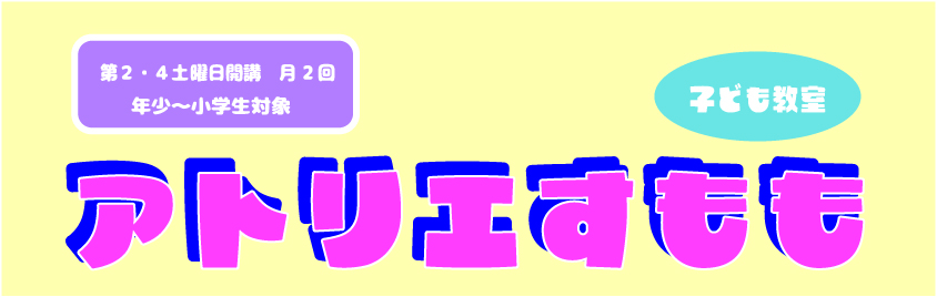 | 土 | 自由絵画 10:00〜12:00 第1.2.3 | 素材を楽しむ心表現 10:00〜12:00 第1.2.3 | 版画の時間 13:30〜15:45 第1.3★ | オハヨウくつしたこども造形教室 ①9:30〜10:45 ②11:10〜12:30 第1.2.3★ | アトリエすももこどもアート教室 13:30〜15:00 第2.4★ |