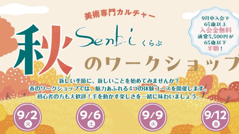 Senbiくらぶでは、この季節ならではの体験を楽しめる4つのワークショップをご用意しました。初心者の方も経験者の方も、心ゆくまでアートの時間をお楽しみください。